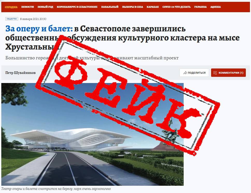 Таким образом, информация о том, что на момент публикации статьи, 8 января 2021 года, “в Севастополе завершились общественные обсуждения культурного кластера на мысе Хрустальный”, и что “большинство горожан и деятелей культуры поддерживают масштабный проект”, распространенная журналистом Комсомольской Правды, не соответствует действительности и подлежит удалению, либо уточнению в соответствии с
