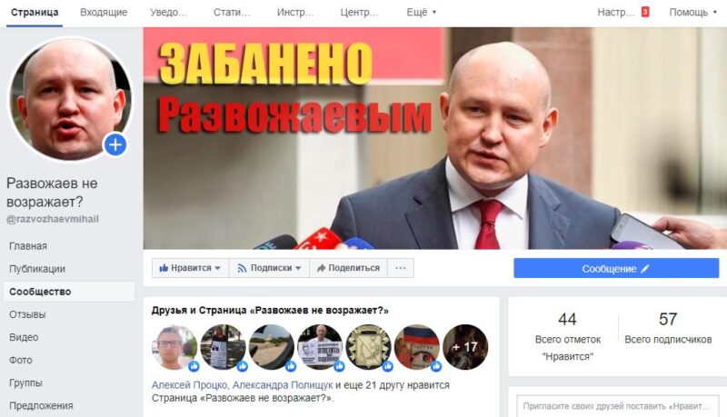 После ряда критичных, но объективных (основывающихся на фактах) публикаций Общественного Движения “5 Обороны Севастополя”, типа: “«Доброе дело сделали, но не доделали!» Как «Единая Россия» неудачно пропиарила своего малоизвестного кандидата в депутаты Инну Гончарову на поспешном открытии детской площадки на ПОР 67“, Михаил Владимирович закрыл доступ нашему администратору к своей страничке Фейсбук www.facebook.com/Razvozhaev.m.