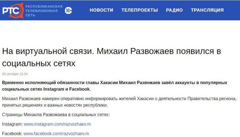 1. переделали раздел “Губернатор”, в котором до этого совершенно бесплатно кросспостили Инстаграм Развожаева, поддерживая и расширяя, тем самым, круг его интернет-поклонников и изменили название страницы. Теперь в разделе “Губернатор” выводится посты со страницы . Качество модерации в которой мы снизим до дозволенного законодательством РФ минимума. Теперь страница выглядит так: