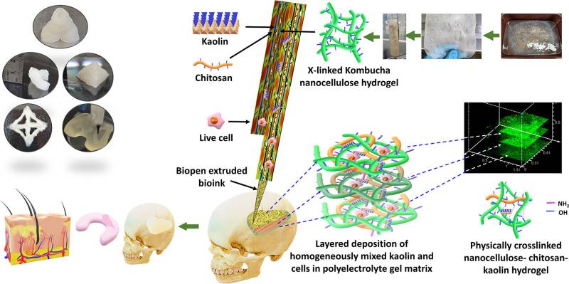 Чайный гриб — это симбиотическая культура бактерий и дрожжей, которая ферменттрует чай. Микроорганизмы производят целлюлозу, которая биоразлагаема и совместима с клетками. Однако наноцеллюлоза из комбучи имеет запутанную структуру, требующую модификации для 3D-биопечати.