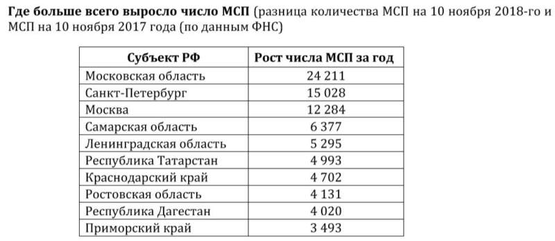 Согласно официальных данных Росстата в целом за год в Российской Федерации количество МСП выросло в 72 регионах на 138 731 (+ 2,4%), микробизнес — на 2,7%. При этом, МСП за год снизилось в 13 регионах: малых – на 4,8%, средний бизнес – на 4,5%.