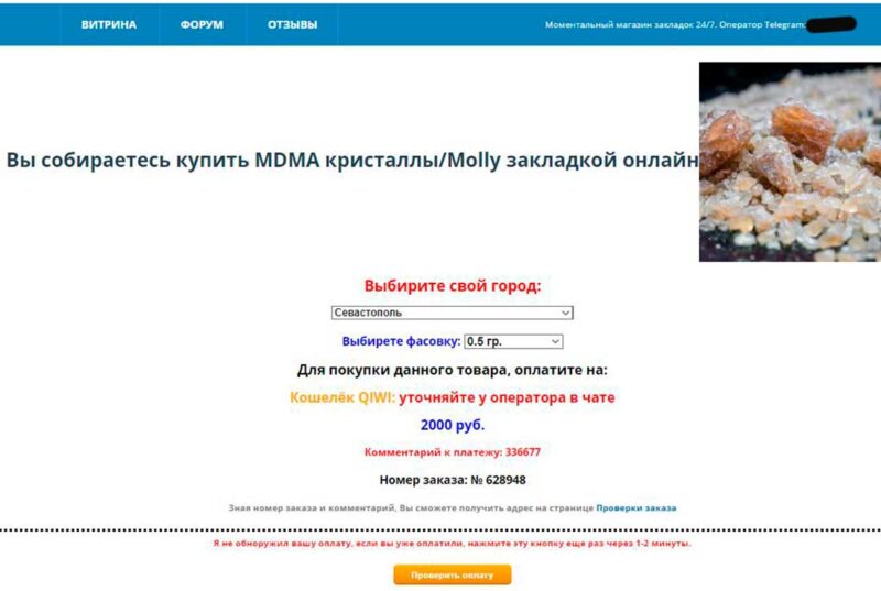 Оплата товара производится онлайн, через Qiwi – кошелек, номер которого без труда можно узнать у оператора в Telegram — мессенджере, вместе с местом закладки, после проверки оплаты.