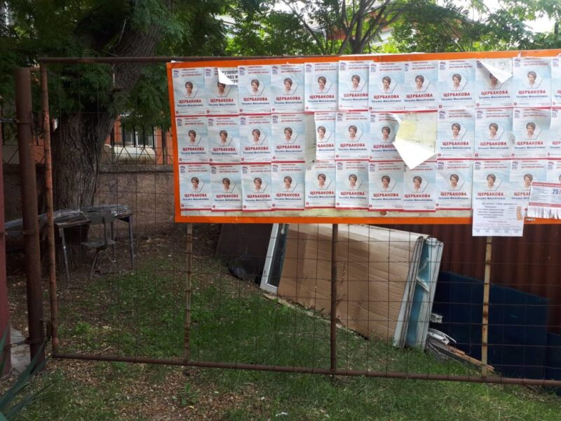 Доска на заборе у гаражей сплошь увешана агитационными листовками с фотографией Татьяны Михайловны.