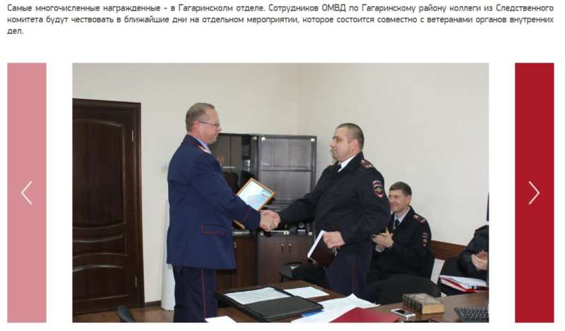 Самые многочисленные награжденные – в Гагаринском отделе. “Сотрудников ОМВД по Гагаринскому району коллеги из Следственного комитета будут чествовать в ближайшие дни на отдельном мероприятии, которое состоится совместно с ветеранами органов внутренних дел”, – торжественно сообщается на сайте следственного комитета Российской Федерации по городу Севастополю, где также приводятся фотографии награжденных руководителей полиции Гагаринского района.
