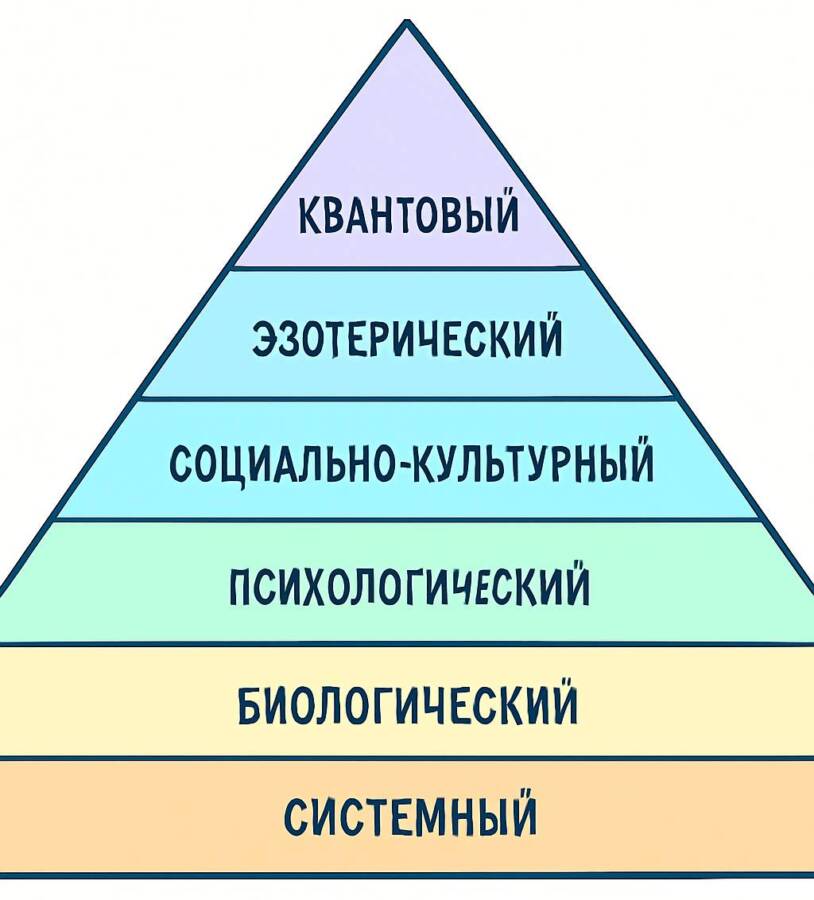 Она показывает, как каждый уровень — от биологии до квантовой метафоры — накладывается друг на друга и формирует целостную модель.