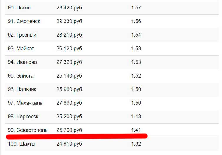 После присоединения к Российской Федерацией, вот уже 5-й год, Севастополь опережает только город Ростовской области, расположенный в 26 км от границы с Украиной.