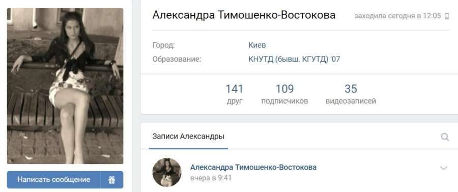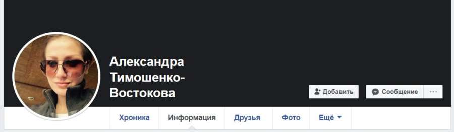 Из соцсетей мы выяснили, что молодая дама с похожей редкой фамилией и именем отчества, имеет закрытую страничку на Фейсбук,