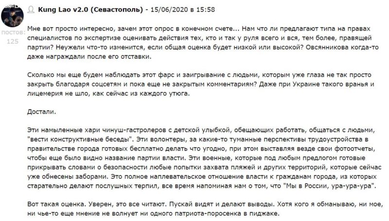 Узнав об этой новости, читатели местного СМИ ForPost сразу же перешли к оценкам, сделав 60 комментариев. Приведем скрины двух, наиболее ярких, пока модераторы их не удалили.