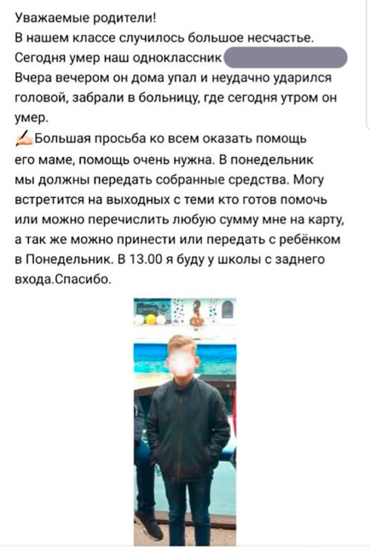 Согласно рецензированной версии, опубликованной СМИ: “восьмилетний мальчик, прыгая дома на кровати, очень сильно ударился головой о каркас. Родные вызвали карету «Скорой помощи», но когда ребенка привезли в городскую больницу, с предварительным диагнозом закрытая черепно-мозговая травма, то врачи отделения травматологии констатировали смерть ребенка.
