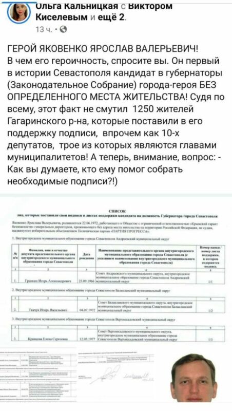 Напомним, за поддержку Михаила Владимировича Развожаева, проживающего в городе Москве, но работающего временно исполняющим обязанности Губернатора города Севастополя, подписи поставили 10 представителей внутригородских муниципальных образований города. При этом единственного коренного севастопольца – Романа Кияшко с выборов “сняли”.
